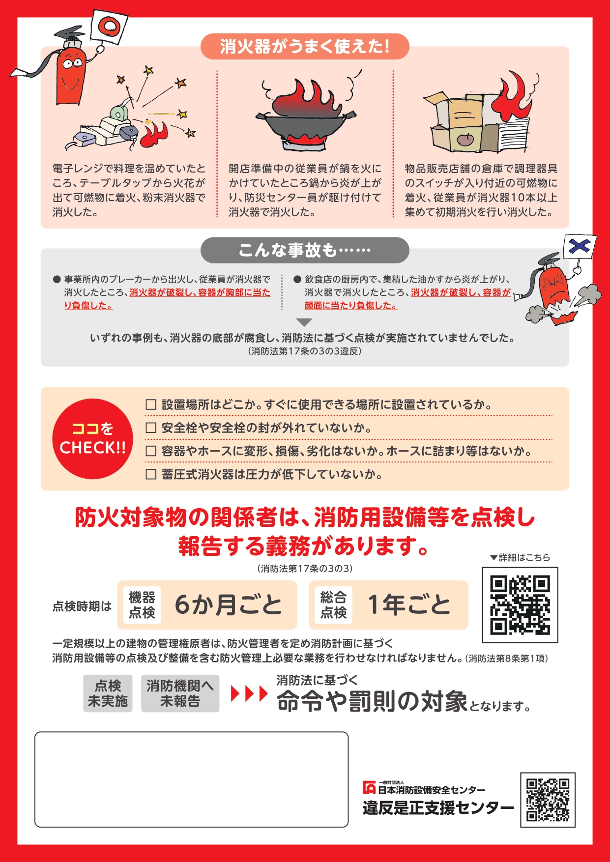※防火対象物の関係者は、消防用設備等を点検し報告する義務があります。